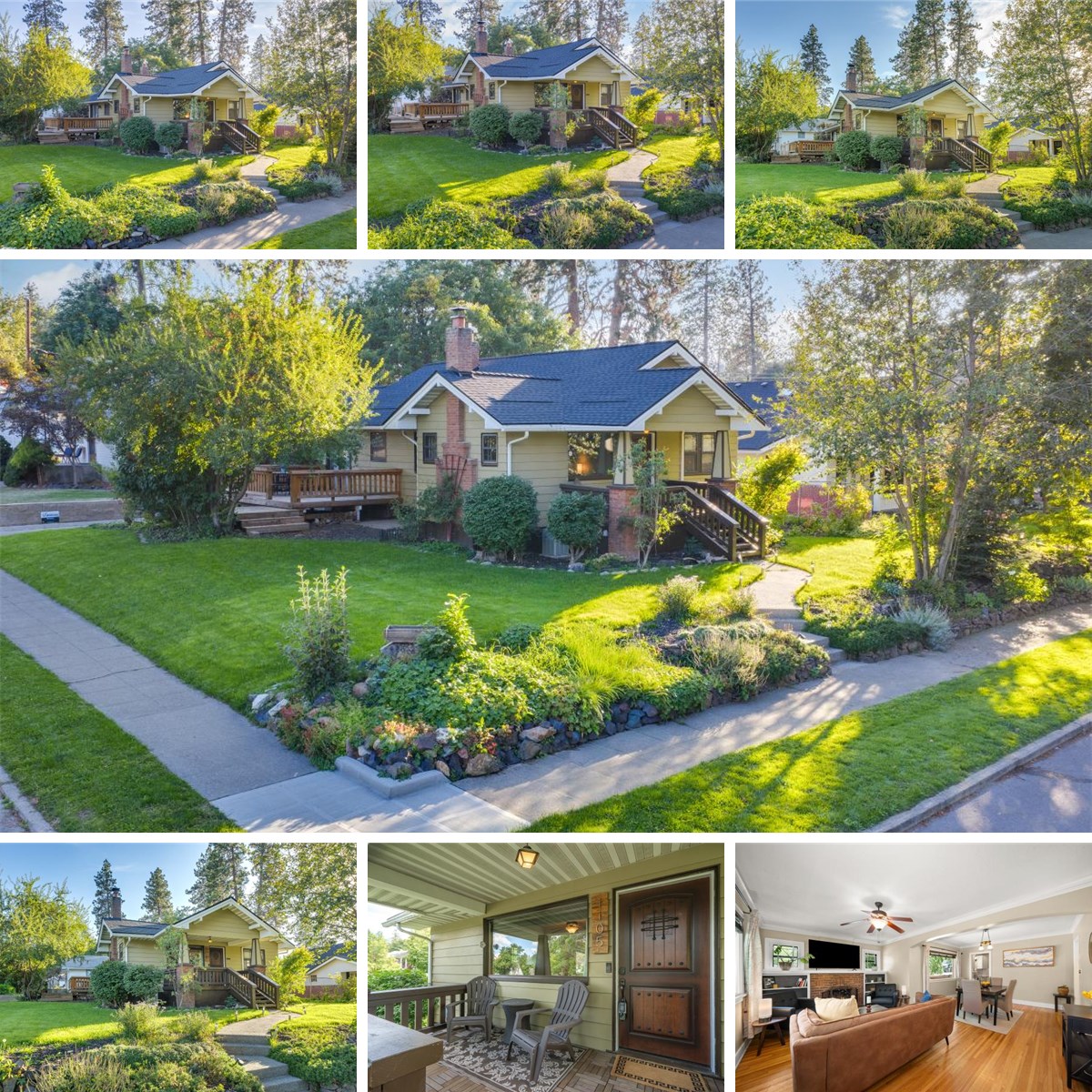 Charming three-bedroom, two-bath bungalow nestled between High Drive and Wilson Elementary on Spokane’s idyllic South Hill, this timeless 1929 home merges century-old character with thoughtfully updated amenities. Hardwood floors, original woodwork, and a cozy wood burning fireplace honor the home’s heritage while the modern kitchen shines with white cabinetry, granite countertops, stainless appliances, and a bright breakfast nook. The partially finished basement adds a media area, half bath, laundry, and a non-egress bedroom. Situated on a spacious corner lot, lush landscaping and multiple outdoor living spaces elevate entertaining. With Manito Park just minutes away, enjoy walking paths, botanical gardens, and the scenic beauty of this peerless Spokane jewel. Local cafes and coffee shops invite neighborhood connections, blending the serenity of older residential charm with modern conveniences. This property offers the best of both worlds classic bungalow appeal w/ modern updates all in a park like setting!
