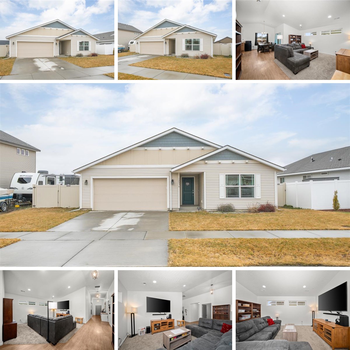Airway Heights 2020 rancher offering comfortable one-level living with 3 bedrooms, private primary suite featuring a walk-in closet, dual sinks, and a shower. Durable LVP flooring throughout provides easy cleaning and everyday functionality. The open floor plan with vaulted ceilings creates a bright, welcoming living space. The kitchen offers excellent storage with 42" upper cabinets, stainless appliances, an island eating bar, and a large pantry just off the kitchen. Functional layout includes a mudroom entry from the garage and a separate laundry room. Enjoy outdoor living with a covered back patio plus an expanded deck, ideal for entertaining; and a fully fenced backyard. Room to park a boat or RV behind the fence near the garage. Tankless water heater ensures plenty of hot showers. CC&Rs but no HOA fees. Conveniently located near parks with play equipment and splash pad, Fairchild AFB, Spokane International Airport, EWU, new shopping, casinos, and just min to down town Spokane. Contact me for a showing or for more information.