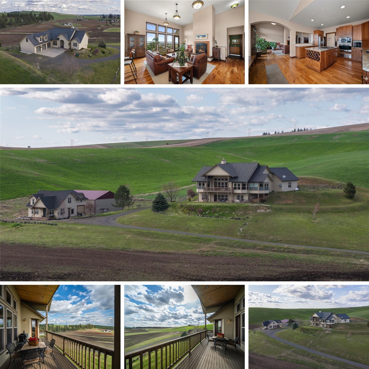 Take in the sweeping territorial views of rolling fields stretching to Steptoe Butte from your covered deck, and every room. This well maintained custom home showcases superior quality and energy efficient geothermal heating. Ideal for multi-generational living with a detached ADU plus additional basement quarters featuring a kitchenette. The main home offers cherry floors, quality cabinetry, granite surfaces, great room with fireplace, 4 bedrooms, bonus room, sunroom, and a spacious basement with family room. The large primary suite includes dual sinks, two closets, soaking tub & mud-set shower. The ADU features 2 bedrooms, 2 bathrooms, living room with fireplace, room to expand, and garage. Potentially rent out the ADU home for added income. A 48x60 shop or barn includes a tool room & loft. Located off a paved road just minutes to Cheney and Spokane amenities.