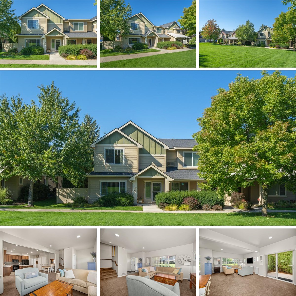 Welcome to this beautiful River District townhouse in Liberty Lake, one of the area’s most sought-after locations! Perfectly positioned, this home is within walking distance to the Centennial Trail and river, Orchard Park with pickleball courts, playground, and covered pavilion, as well as the community garden and farm. It’s an incredible spot to live with endless opportunities for recreation and connection right outside your front door. This 3-bedroom, 2.5-bath home features a spacious kitchen with an island and walk-in pantry, a fully fenced private patio off the living room, and a 2-car garage for convenience. The large primary suite impresses with vaulted ceilings, a walk-in closet, and a bathroom with double sinks, while the second bedroom also includes a walk-in closet. With a greenbelt right out front, you’ll enjoy a quiet setting and a beautiful view that enhances the peaceful feel of this townhouse. Don’t miss the chance to live in Liberty Lake’s vibrant River District community.