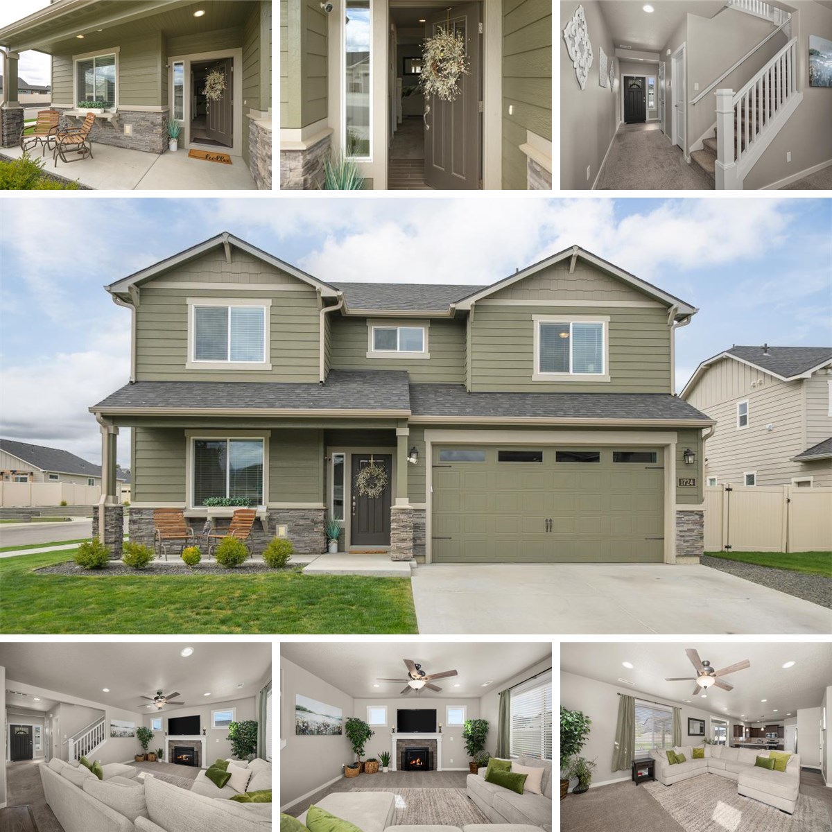 Welcome Home to coveted Sterling Hills adjacent the Saltese Flats natural area w/4.5 miles of trails, hiking & wetlands to explore. Newly built in 2021 this fantastic 2 story is everything you could want. Open floor plan, main floor bedroom/office w/powder room then onto the fantastic living room featuring tall ceilings, gas fireplace with mantle flanked by windows, great room concept opens to the dining area and beautiful kitchen featuring loads of cabinets, quartz counters, eat bar and walk-in pantry. 4 more generous sized bedrooms & convenient laundry room are found on the upper level. Fantastic primary suite outfitted with double vanity, soaking tub, separate shower and walk in closet too. Situated on a large corner vinyl fenced lot with 8' double drive gate, covered patio, gas fire pit and gas plumbed for your BBQ~ready to entertain! A true gem...Similar new homes nearby are priced at $645k!
