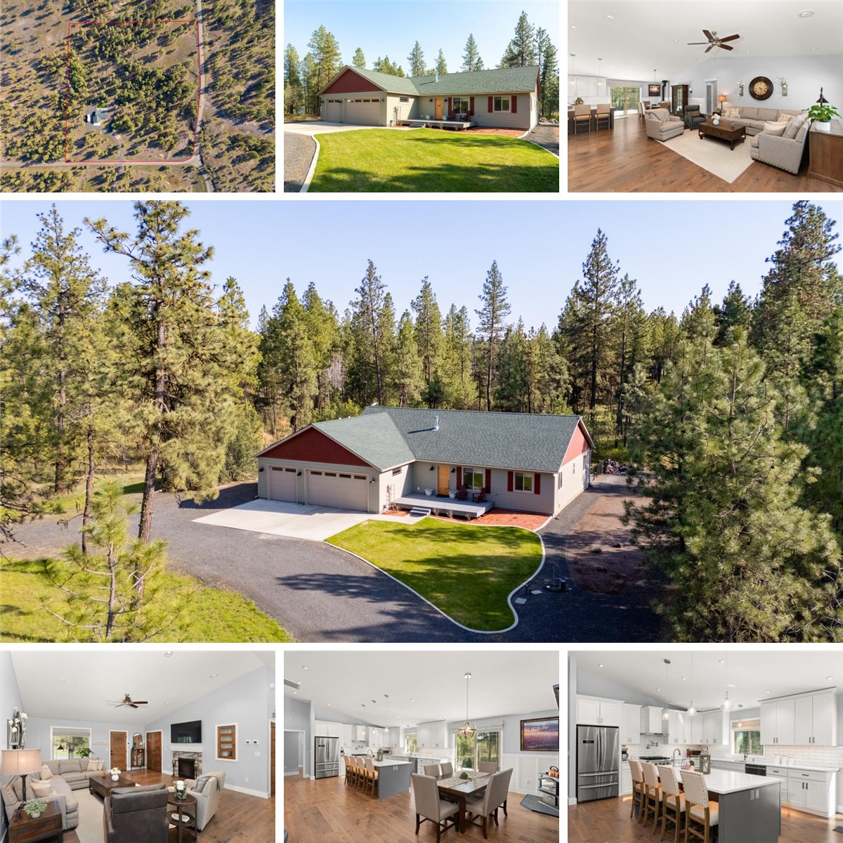 Modern living on a private retreat! Built in 2017 and updated in 2021 with custom upgrades throughout, this amazing home is nestled on 9.87 flat treed acres just southwest of Spokane. Modern colors give way to a contemporary open layout with custom cabinetry and thoughtful storage solutions in the kitchen and living areas. Engineered wood floors, vaulted ceilings, solid wood doors, custom tile in kitchen and bathrooms, the list goes on and on. Take in the quiet surroundings from the front or back 2 step decks and low maintenance landscaping. There's room for your RV (with hook ups!) and a future shop. Carefully maintained inside and out, this turnkey property is ideal for the most discerning buyer. Don't miss it!