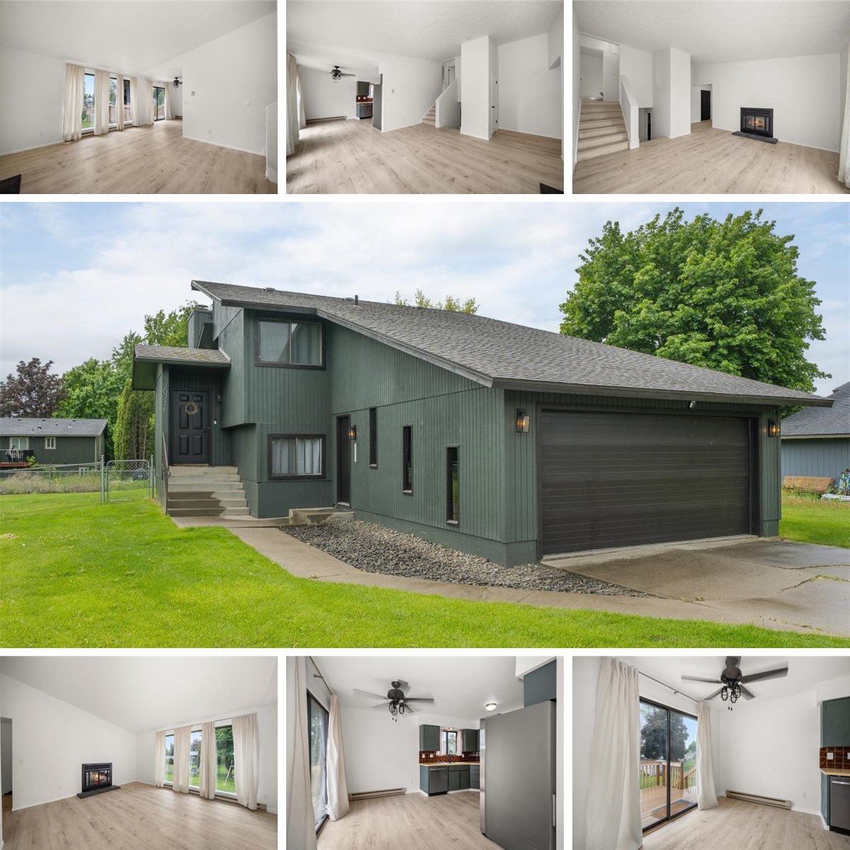 Welcome to this charming Otis Orchards home on an oversized 0.27-acre lot in the East Valley School District! Step inside to vaulted ceilings, a cozy wood-burning fireplace, & new LVP flooring throughout the main & upper level. The kitchen flows into a bright dining area, & the upper level features 2 bedrooms & a beautifully remodeled full bath. Downstairs, you'll find a unfinished bedroom or office, a plumbed second bath, laundry room, & access to the oversized 2-car garage w/opener. The lowest level offers 3rd bedrm spacious egress primary suite—ideal as a primary bedroom, family room, or could be seperated to accommodate both. Recent updates include tasteful paint, new deck, & flooring upgrades. Enjoy a fenced backyard w/ low-maintenance landscaping & is fully sprinklered, perfect for summer BBQs. Located just 10 mins to the Idaho border, near local shops & schools. Rural feel, yet close to everything. New exterior paint, 2010 roof, electric heat. Septic tank & consolidated water.