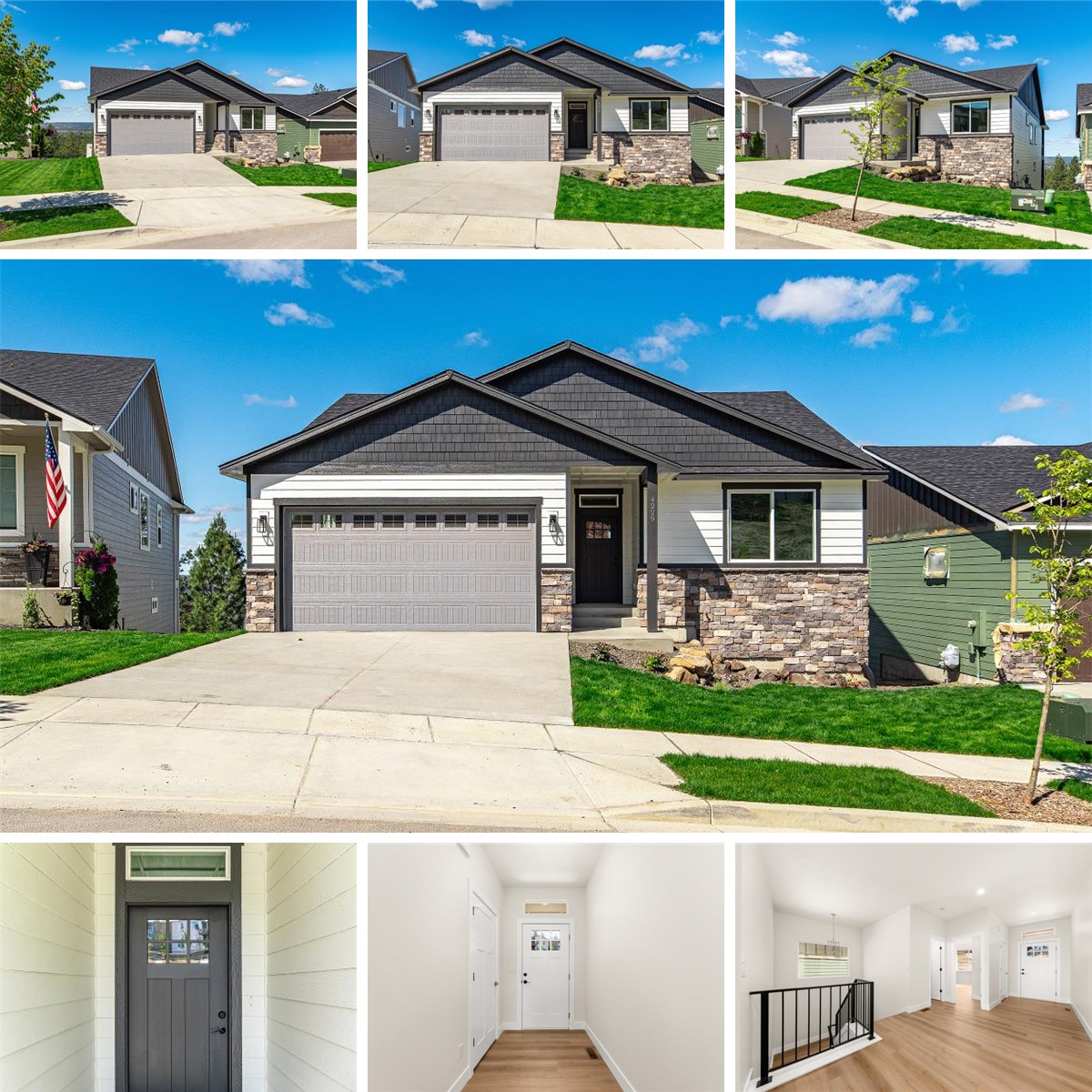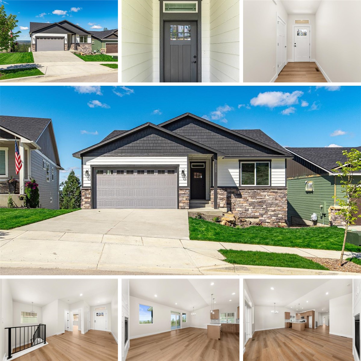MOVE IN READY! An exquisite 4+ bed, 3 bath floor plan with daylight basement. Inside, find a harmonious blend of elegance and efficiency. Vaulted ceilings create an open, airy feel while framing breathtaking panoramic views. The heart of the home is its stunning kitchen with quartz countertops, top-tier appliances, a gas range, range hood, pantry, and a generous "pull-up" island. Flowing seamlessly into the family room, a large linear fireplace adds warmth and ambiance. On the deck, enjoy incredible views and utilize the convenient gas BBQ stub on your new TREX deck with superb views. The primary suite is a sanctuary, featuring a mud set tile shower, a soaking tub, dual vanities with quartz countertops, tile backsplash, and a roomy walk-in closet. Main-floor laundry w/ gas dryer connection. The lower level offers 3 additional rooms and a full & roughed in wet bar and plenty of flex space!