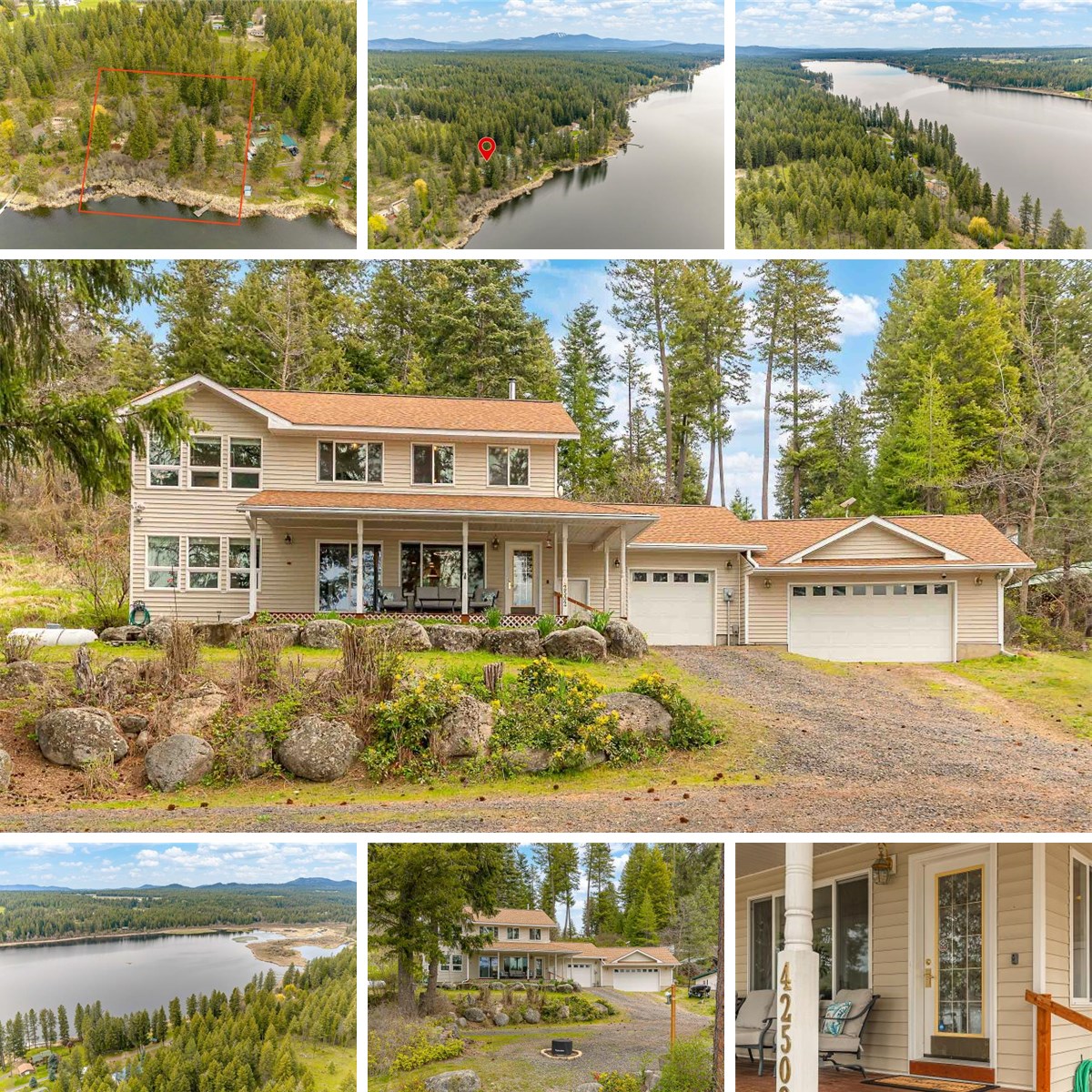 Gorgeous 2-story primary waterfront home on 1.9 acres on Eloika Lake with over 300 feet of lake frontage! Located just 25 minutes north of Spokane with exceptional recreation opportunities for kayaking, paddleboarding, boating & fishing in a quiet & peaceful setting on a private dead-end road with only 1 neighbor beyond it! Set up for year-round lake living, with exquisite views from every room! House has 2 primary bedrooms with en-suite bathrooms (one per level!). Updated kitchen with hickory cabinets, granite countertops & stainless steel appliances. House has 4 heat sources: a new gas furnace & new electric heat pump with central A/C (installed in July 2024) plus a high-end Lopi wood-burning stove in the living room that's powerful enough to heat the entire house, and there's a gas stove in the upstairs family room. Central vacuum system. Main floor laundry. Covered front porch with spectacular views looking out over the lake! Fenced garden area beside the fire pit overlooking the lake. Oversized 3-car attached garage with 12' ceiling and 2 shop heaters (one gas, one electric). 2nd garage has a finished attic / loft storage. Wide 36” hallways & doorways throughout. Strong 7 gpm well (200' deep) with a 500 gallon cistern. RV parking, and space for a shop alongside the house. ADT security system including cameras are included, with new smoke detectors recently installed that are integrated with the security system & monitoring. 500 gallon propane tank included in sale. New water heater installed in 2020. New well pump in 2025. New septic pump in 2026. Upstairs master bath remodeled in 2025. There's a natural spring on the north side of the property with a seasonal stream that crosses under the road to the north, through a 6" culvert. 2 metal poles mark the northern boundary of the property. Exceptional wildlife viewing opportunities including migratory geese, swans, osprey, pelicans, several species of ducks, quail, etc., and there are 4 eagles that over-winter at the lake each year. The South Fork of the Little Spokane River enters the lake to the north forming a slough that can be accessed by kayak, it's a great fishing spot! Eloika lake has abundant fishing opportunities including largemouth bass, black crappie, yellow perch, panfish, and rainbow & brown trout.