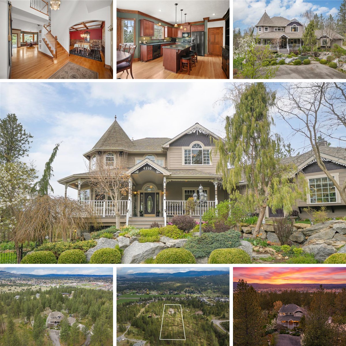 Custom Victorian 2 Story on a hard to find close-in 5.74 acre lot in the heart of Central Valley tucked in a small gated community. This is a one owner home with expansive sunset views, wrap around porches & show stopping landscaping all carefully curated by a master gardener over the last 2 decades. The grounds include a gazebo, cozy garden nooks, large concrete patio w/pergola, walking paths & more waiting to be enjoyed. The home itself is full of thoughtful detail including antique fireplace mantle, vintage chandelier & crown molding. Grand stairway in the foyer w/formal living & dining rooms on each side opens into the great room w/window bench, informal dining & granite kitchen w/large center island. This is a perfect space for entertaining & room for everyone. Powder room, small office & laundry on the main. Daylight walkout basement with slate tile floor. Large bedrooms throughout & great storage. Primary suite plus 2 large bedrooms with walk in closets and jack & jill bath on the 2nd level. Basement has 1 egress bedroom with double closets and a 5th room that could be used as a non-egress bedroom, office, craft room, etc. 3 car garage with workshop space PLUS a detached art studio/garage & carport.