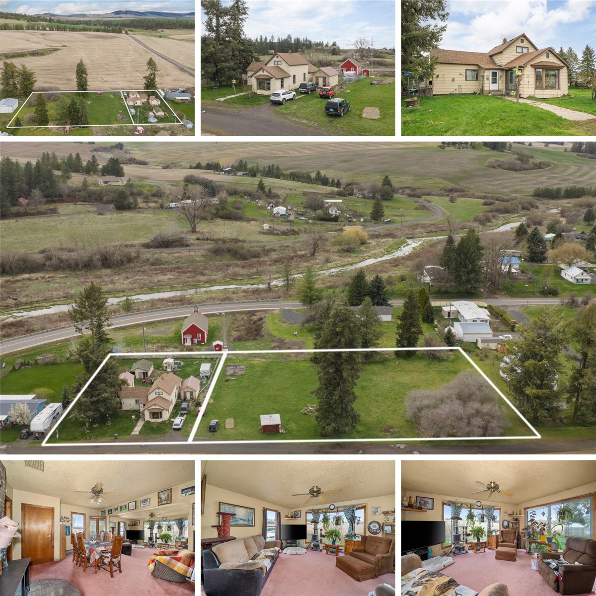 Nestled on two parcels being sold together, this exceptional property offers a rare opportunity to enjoy your own private retreat in the charming town of Waverly. The first parcel spans .33 acres and offers the convenience of single-level living featuring 3-bedrooms, 1-bath and 1,650 square feet of living space, complemented by a fully fenced backyard, multiple outbuildings, and a detached one-car garage. One of the outbuildings may have the potential of being refurbished and used as additional living. The second parcel, totaling .84 acres, presents endless possibilities, whether you envision building a custom home, creating a private in-law setup, or constructing a spacious shop or greenhouse. Surrounded by picturesque farmland, this property offers a peaceful, rural setting while remaining just a short 30-minute drive to Spokane, where you’ll find a full range of shopping, dining, and everyday amenities.