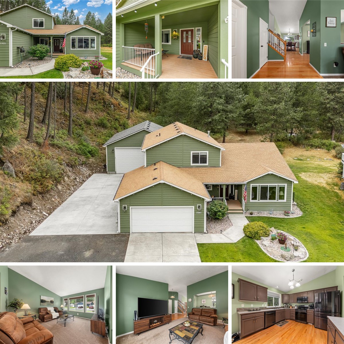 Looking for multi-generational living or rental income opportunity and a spacious 34x36 shop? This is it! This beautifully maintained 6-bedroom, 4-bath home offers 3,630sq. ft. of living space, featuring two generous family rooms with newer carpet throughout, gas fireplace, large open kitchen with hardwood flooring, newer stainless-steel appliances and a main floor bedroom ideal for guests. Upstairs you will find the primary suite w/walk in closet, full bath, 2 additional bedrooms and a full bath. The lower level offers private living space with separate entrance, full kitchen, laundry, 2 bedrooms, and a full bath, perfect for passive income or in-law suite. The impressive 34x36 heated shop is fully insulated and drywalled, with 12’x18’ automatic door and side pass-through, providing ample space for tools, toys, or recreational vehicles. Located in the gated community of Blackstone in Nine Mile Falls. Access to the community clubhouse and indoor pool! Minutes to Long Lake, ORV Park, Schools, and Shopping!