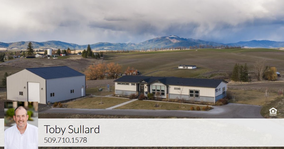 Small town living with a huge view! Welcome to life on B street. This newer 2340 sqft 3 bed 2 bath manufactured home is positioned for the best view on this 5+ acre parcel. With very generous room sizes, built-ins and storage the search ends here. Utilities are all on city water and sewer, so no well issues here! Retreat to the back yard and enjoy the massive view looking out at Mica Peak and surrounding farms. The 40x40 shop has all the room for your toys, enclosed parking, hobbies etc. You can pull through it or utilize the 14' door for your RV. Just 25 mins to Spokane Valley. Easily walk to the park, enjoy a meal at the local hangouts.