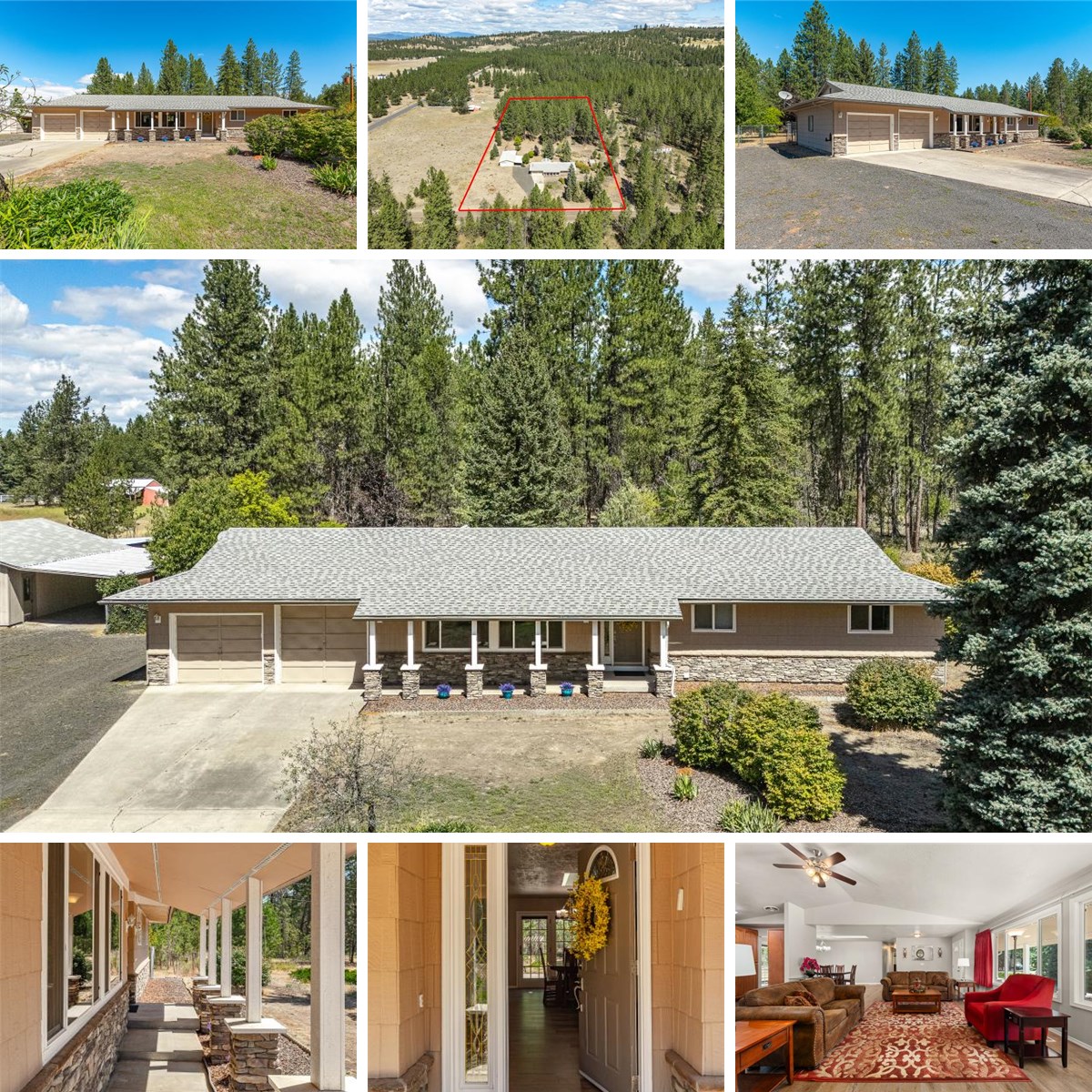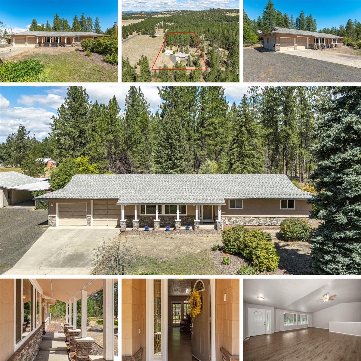 Welcome Home! Your own slice of heaven situated on 3.55 Acres just 35 minutes to DT Spokane. With a complete remodel it's like a brand new home! New roof & gutters w/guards in 2017, and h20 tank in 2019, vinyl windows, multiple skylights & LVP flooring too. Light & bright open floor plan with soaring vaulted ceilings, fantastic cooks kitchen that features a large adjacent prep area with loads of cabinetry, granite counters and double oven~ great for entertaining! Generous dining area with room for everyone and sliding glass door leading to the oversized deck overlooking the back yard pond. Massive primary suite with oversized walk in closet and walk-in shower. The finished lower level features rec room, large laundry room, 2 giant bedrooms + a bonus 3rd craft/storage/office and full bath. Did I mention the 2 car insulated attached garage + 25x30 heated shop w/attached 25x25 stable, 14x27 lean-to, RV dump & 50x39 fenced dog run? Such a great place...a true must see!
